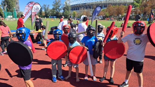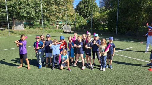 Dort angekommen suchten wir uns einen Platz im Schatten. Das Angebot an Sportarten war sehr vielfältig. Wir konnten Feldhockey, Baseball und Turnen auf der Airtrack ausprobieren, bevor wir im Schatten dann ein kleines Picknick veranstalteten.